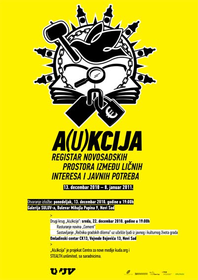 A(u)kcija – registar novosadskih prostora između ličnih interesa i javnih potreba prati aktuelni preobražaj životnog prostora i urbane kulture Novog Sada, smešten u kontekst post-jugoslovenskih gradova. Projekat istražuje teren na kome su najuočljivije neke od njihovih dinamičnih, neregulisanih i uznemiravajućih promena. Ko su igrači, za koga igraju, mozemo li prepoznati strategije na kojima zasnivaju svoje poteze i kako se to odslikava na javne potrebe grada? Novi Sad poslednjih godina prolazi kroz značajnu transformaciju. Nastali su čitavi kvartovi, investirano je u mnoge (stambene) objekte – divlje ili ne, gradila se infrastruktura, dok nedostaju bioskopi, gradskim kasarnama sledi rasprodaja, a Tvrđava i Podgrađe na pragu su kapitalizacije u ime turizma.